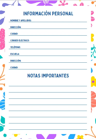 Espacios para datos personales y registro de información clave del año.