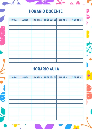 Planillas diferenciadas que permiten visualizar carga horaria y organización semanal.