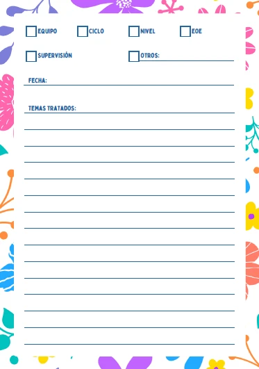 Planillas para documentar temas tratados y asistentes.